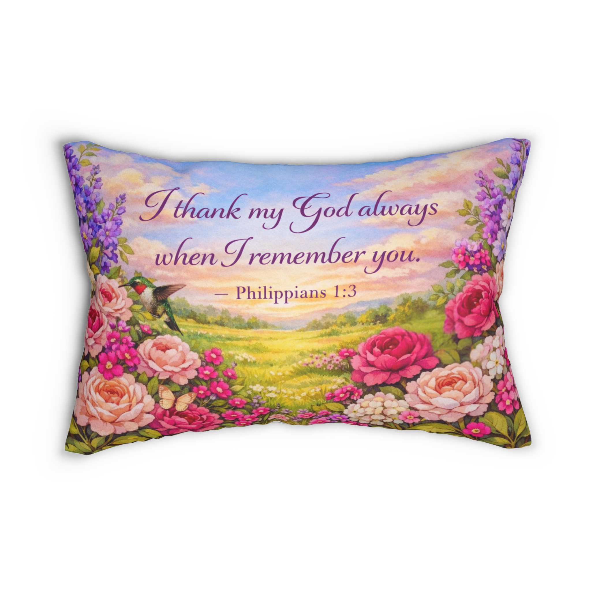 Phil 4:13 Bible Verse – Pink Blooms Lumbar Pillow